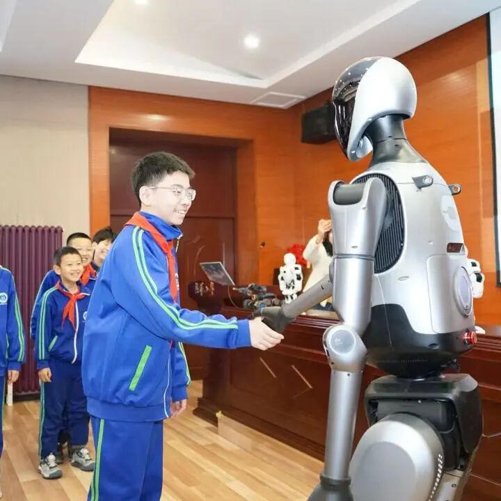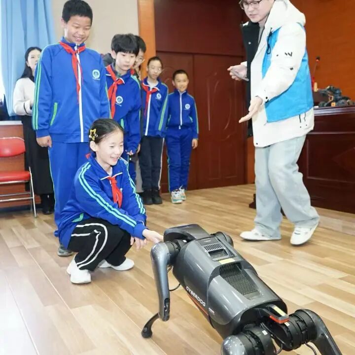 活动现场设置了丰富的机器人科普展示环节,具身机器人展现智能互动优势,机器狗与两栖搜救机器人彰显科技守护价值,“悬崖勒马”机器人揭开智能避障奥秘,仿生蝴蝶机器人尽显仿生科技之美,“惠手通言”智能手套、“藤语智采”采摘机器人传递科技的人文温度与产业价值,跳舞机器人的动感表演更将现场氛围推向高潮。志愿者与技术人员现场操作演示、细致讲解,小学生们走上台前近距离接触前沿科技成果,真切感受人工智能的独特魅力与科技力量。