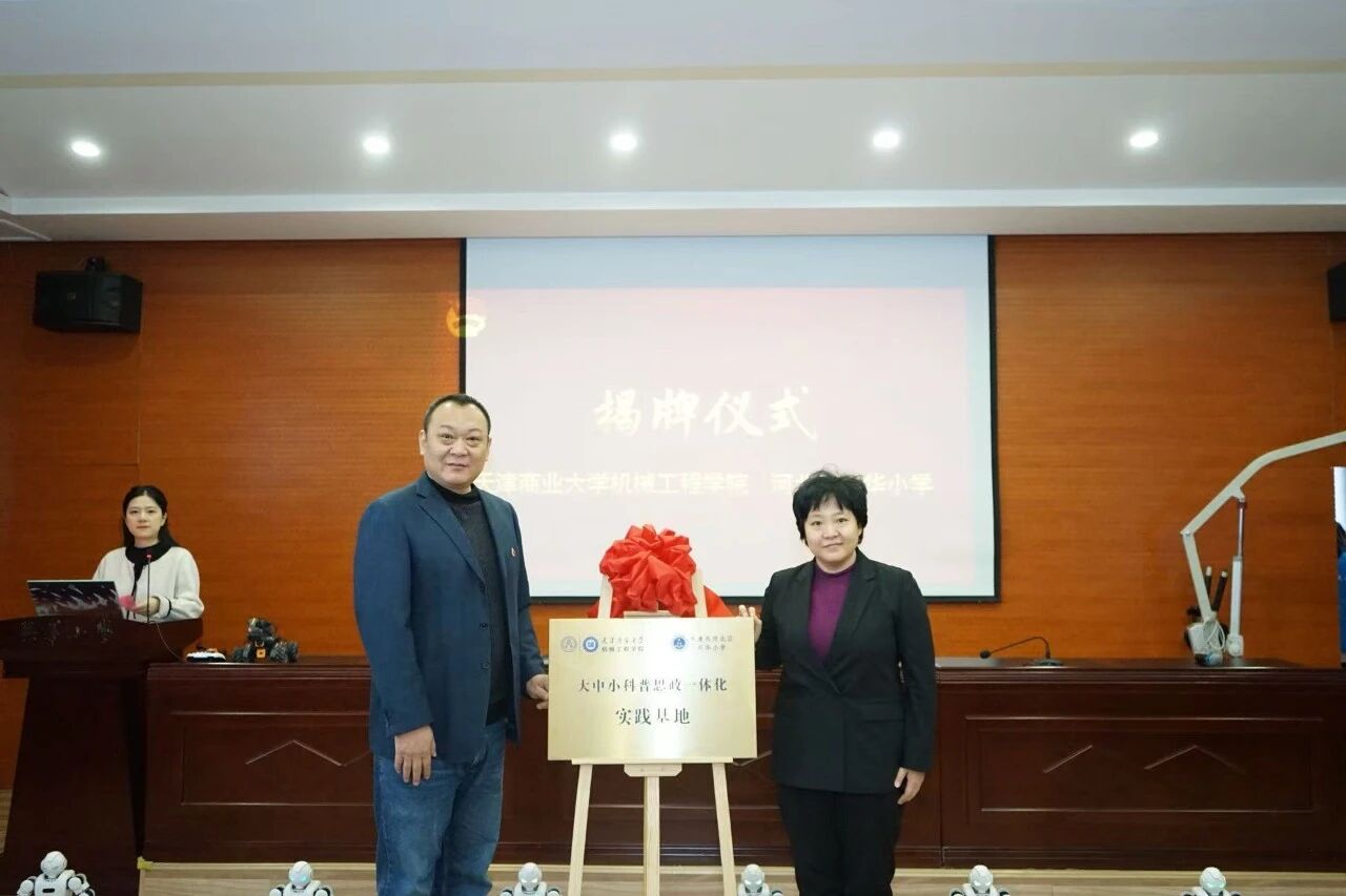 3月5日上午,机械工程学院联合河北工业大学电气工程学院、天工开物(天津)机器人技术有限公司、天津市趣堂科技有限公司共同组建科普宣传服务团队,走进天津市河北区兴华小学,开展“弘扬雷锋精神,点亮科技梦想”科普宣传志愿服务活动,并举行共建科普思政教育实践基地挂牌仪式。学院党委书记张莹、党委副书记王凯,天工开物(天津)机器人技术有限公司副总经理吕建坤、课程开发部负责人李滕飞,天津市趣堂科技有限公司总经理徐娴,河北区兴华小学党委书记、校长李功,副校长程悦、刘晶,德育主任安睿等共同参加活动。